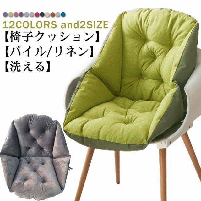 椅子クッション 洗える いす用クッション チェアクッション イス用 背もたれ付き 座布団 腰痛対応クッション リネン 厚みあり 椅子 北欧 無地 オ クッション
