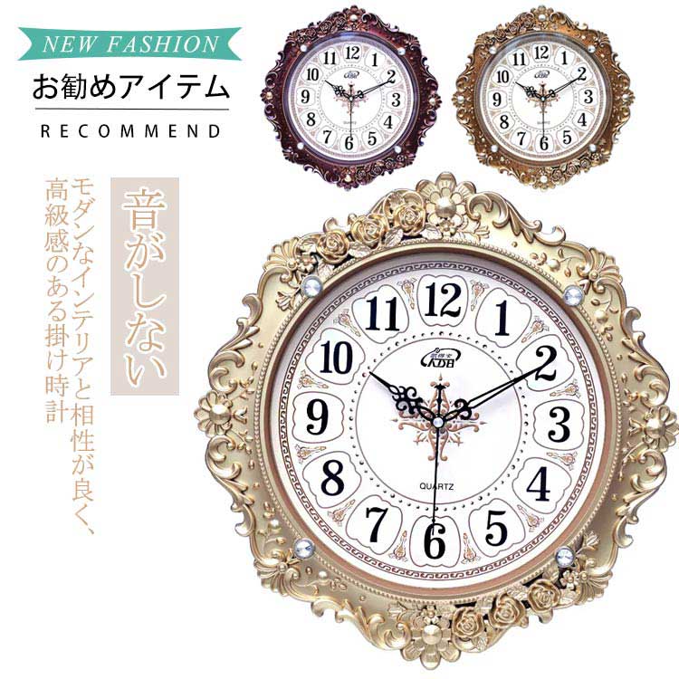 壁掛け 振り子 エレガント 北欧 壁掛け時計 丸 掛時計 ロココ 振子時計 音がしない 華やか ローズ ゴールド インテリア ヨーロッパの雰囲 新生活 韓国 オフィス ウォールクロック 雑貨 リビング