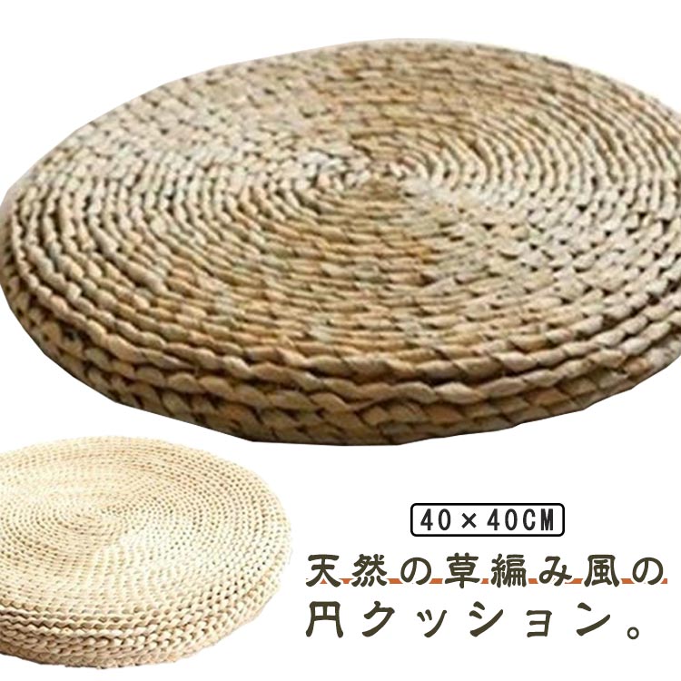 座布団 藤編 草編フロアクッション ラウンドクッション インテリア 円形 丸型 畳 丸座 両面 手編み