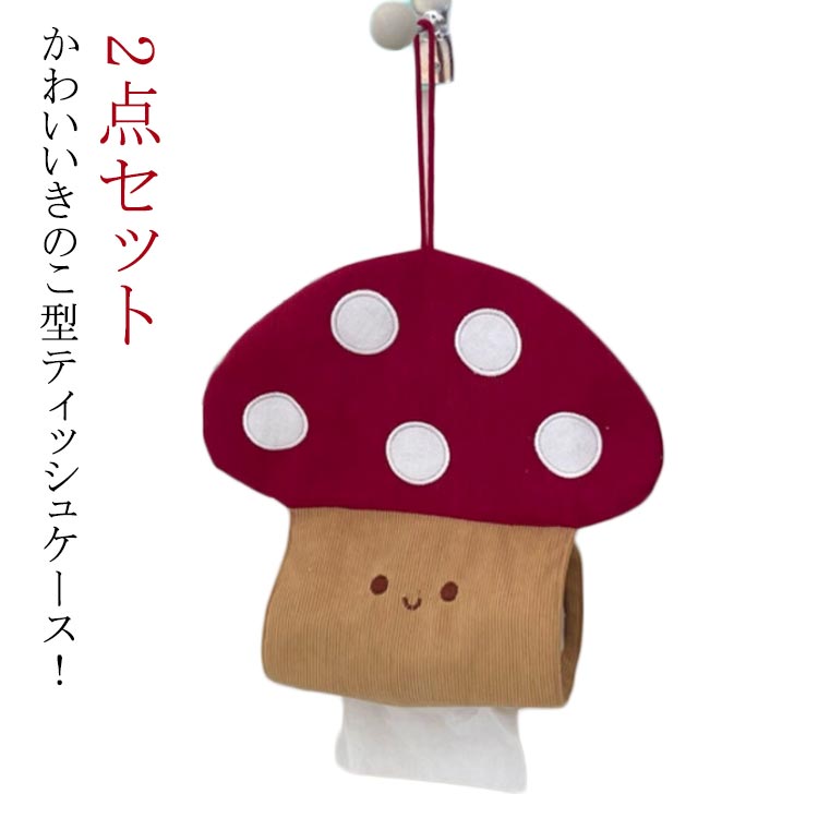 キノコ ティッシュケース 吊り下げ 車 おしゃれ 2点セット ティッシュカバー きのこ 便利 北欧 かわいい 掛け 壁掛け ティッシュ ケース ホワイトデー リビング インテリア 車用ティッシュケース