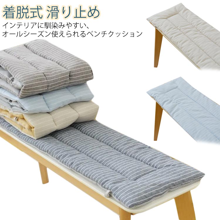 ベンチクッション 長座布団 ベンチシートクッション ロング丈 ベンチ用 玄関ベンチ 椅子用 長方形 お尻が痛くない チェアパッド ソファパッド シートクッション 着脱式 滑り止め 変形 北欧風