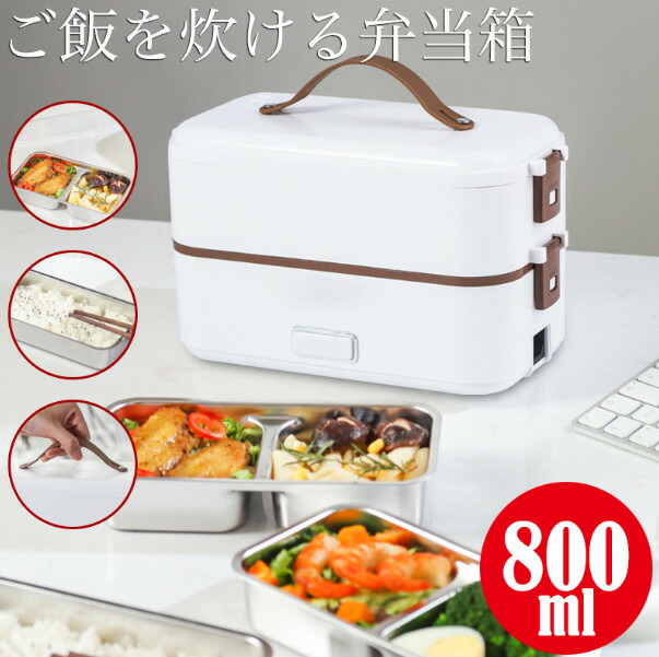 弁当箱 保温 ご飯が炊ける弁当箱 2段 中仕切 炊飯器 800ML 電熱 おかずが温める 完全密封 蓋付き レンジ対応 ランチボックス 男の子 男子 大人 女子 新生活 一人暮らし 通勤 人気