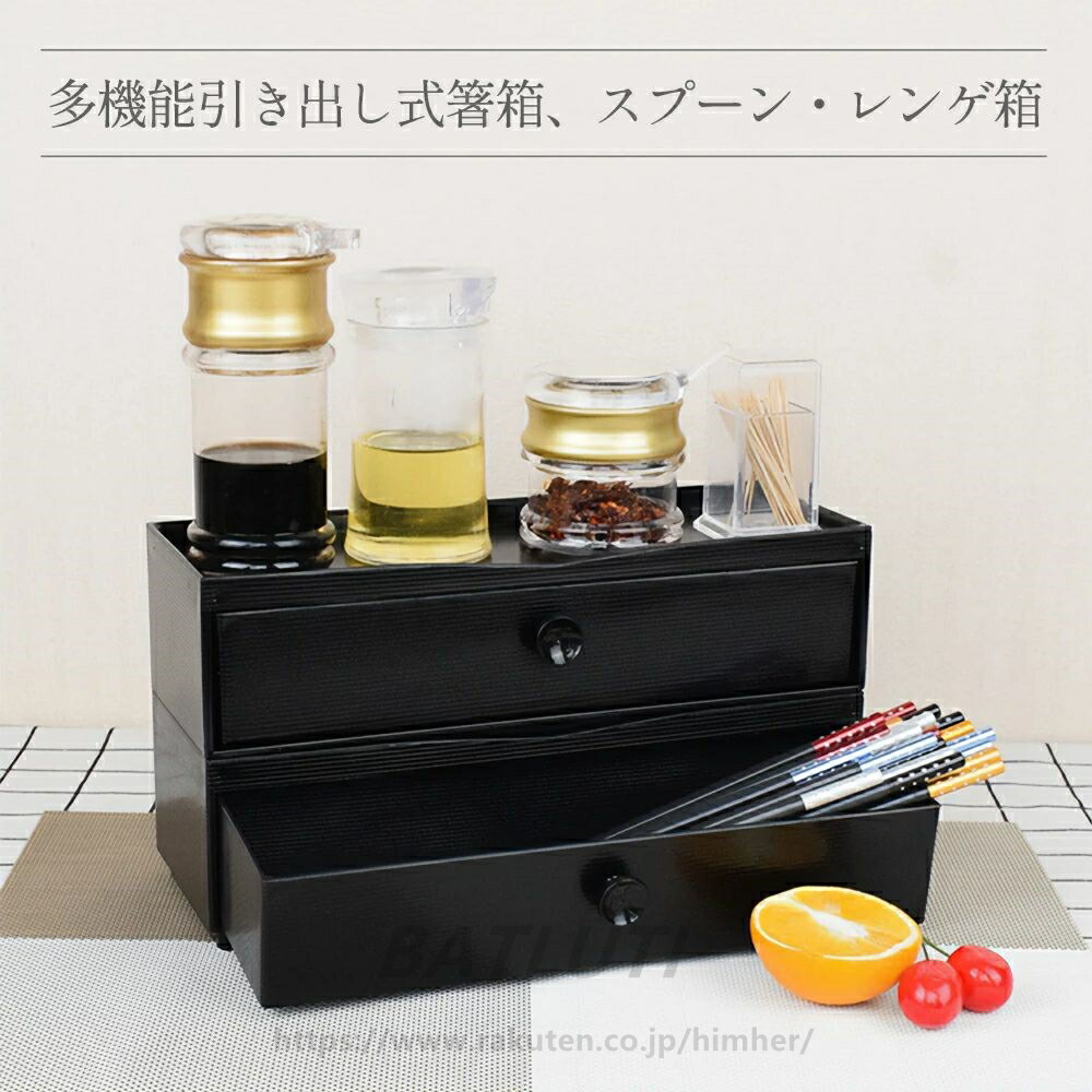 箸箱 2段 箸入れ カトラリーボックス カトラリー収納 業務用 大容量 スプーン れんげ テーブル 卓上 飲食店 自宅用 フォーク 調味料置き シンプル ブラック ラーメン店 スライド 引き出し式 黒