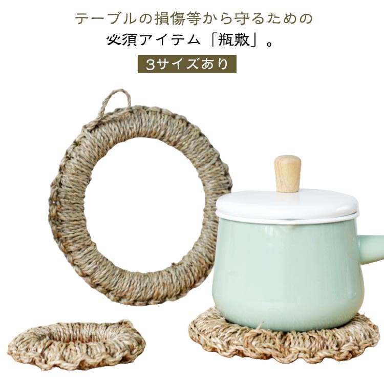 わら編み 鍋敷き 手編み 編み 瓶敷 茶道 釜敷 和風 丸型 円型 ナチュラル 鉄瓶敷き 急須敷 わら おしゃれ 藁 鍋しき なべしき かわいい インテ 鍋敷