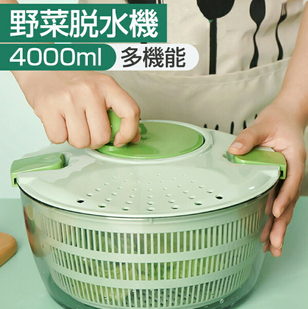 4L大容量 水切り器 サラダスピナー サラダ水切り 野菜脱水機 野菜スピナー 1台3役 野菜 スピナー 水切り ボウル ザル 回転式 手動 丸洗い キッチンアシスト 簡単 便利 時短 たっぷり 蓋あり