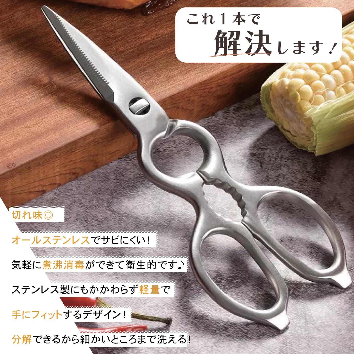 オールステンレス で継ぎ目なしの 食洗器対応 キッチンバサミ ♪ 左右取り外しが出来て 分解洗浄 アウトドア でも大活躍