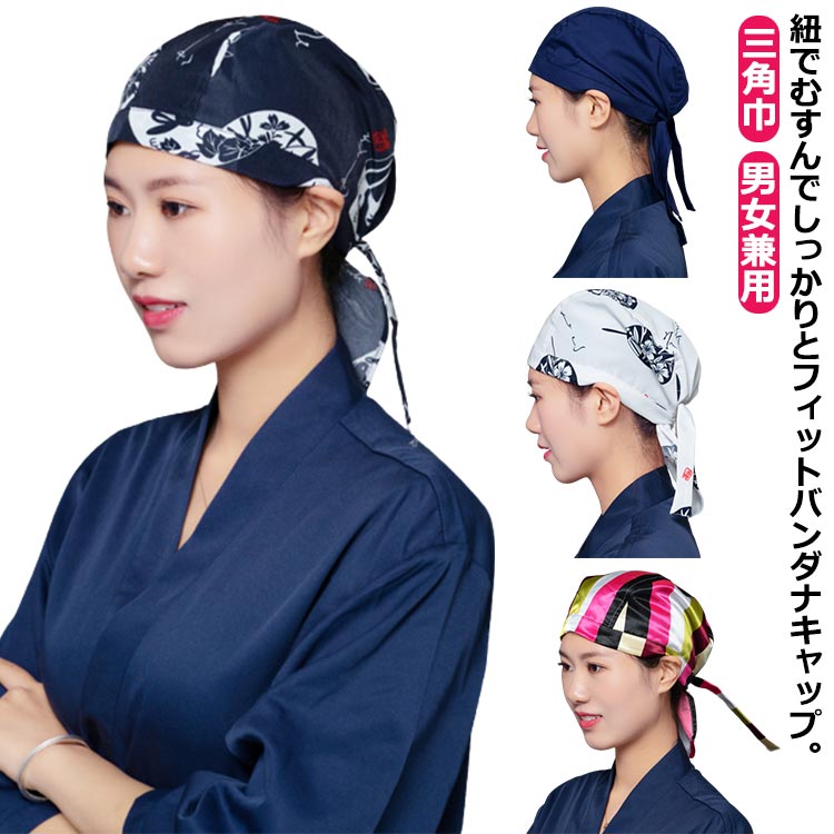三角巾 シェフハット バンダナキャップ キャップ コットン ターバン 綿 バンダナ コック帽 衛生帽 バンダナ帽子 帽子 キッチン帽子 ワークキャップ 衛生キャップ 飲食店 料理 キッチン おしゃれ