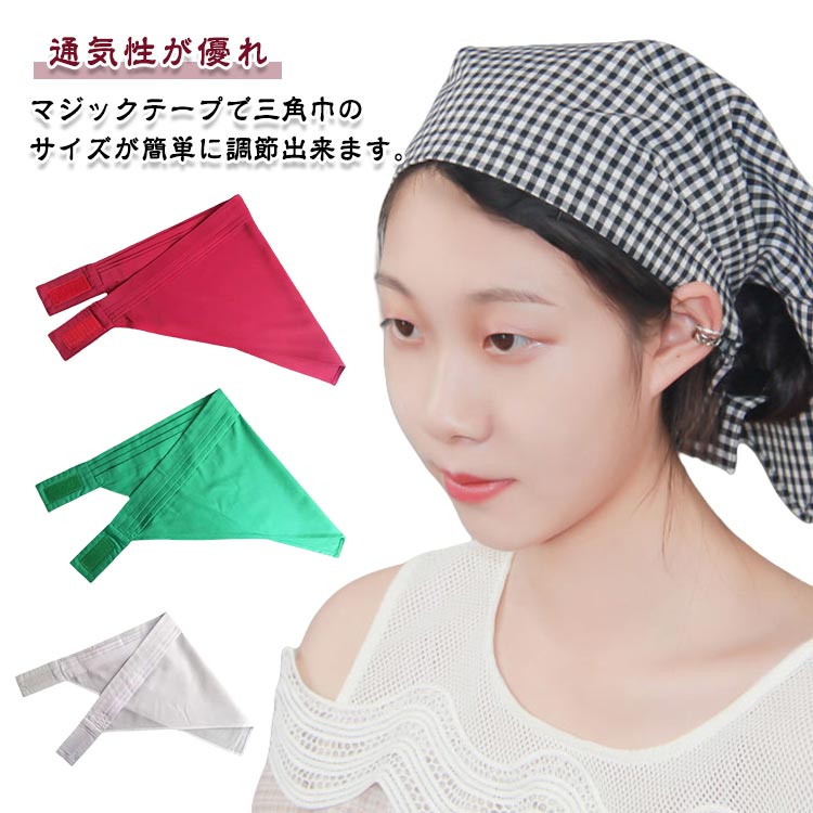 三角巾 通気性が優れ 三角巾マジックテープ シンプル 無地 保育園 学校 おしゃれ レディース メンズ 調理実習 キッチン用 仕事用 料理教室 家庭用 大人用 結びやすい しわになりにくい 女 カフェ
