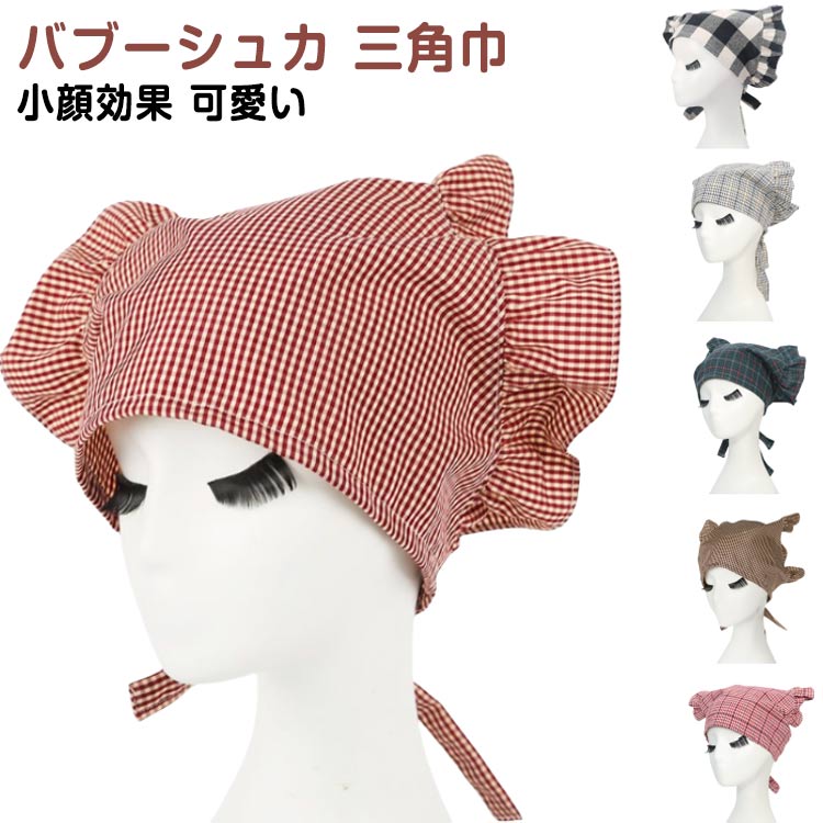 バブーシュカ 三角巾 シンプル チェック柄 カフェ 大人 シワになりにくい キッチン用 可愛い カジュアル おしゃれ しわになりにくい 給食 料理 お料理教室 クッキング 仕事 掃除