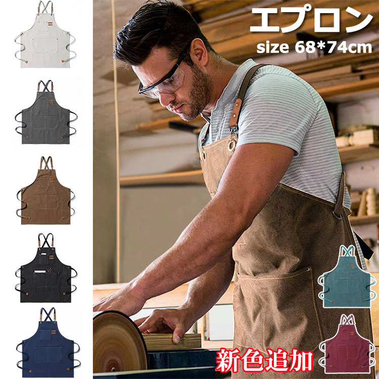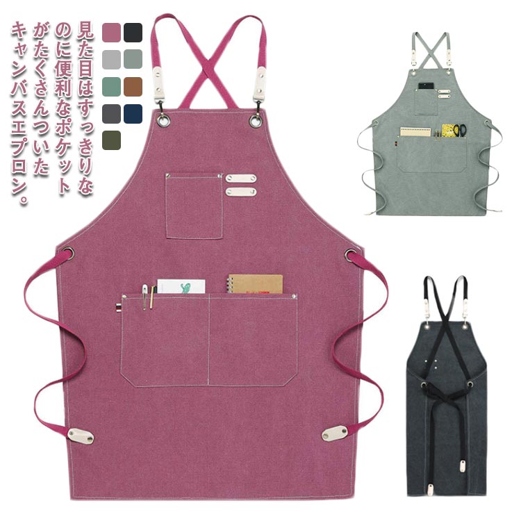厚手 帆布 エプロン メンズ レディース 多機能ポケット 通気性 耐磨耗 防油 防汚 長めストラップ 大容量 丈夫 業務用 ワークウェア クロスバック キッチン 作業服