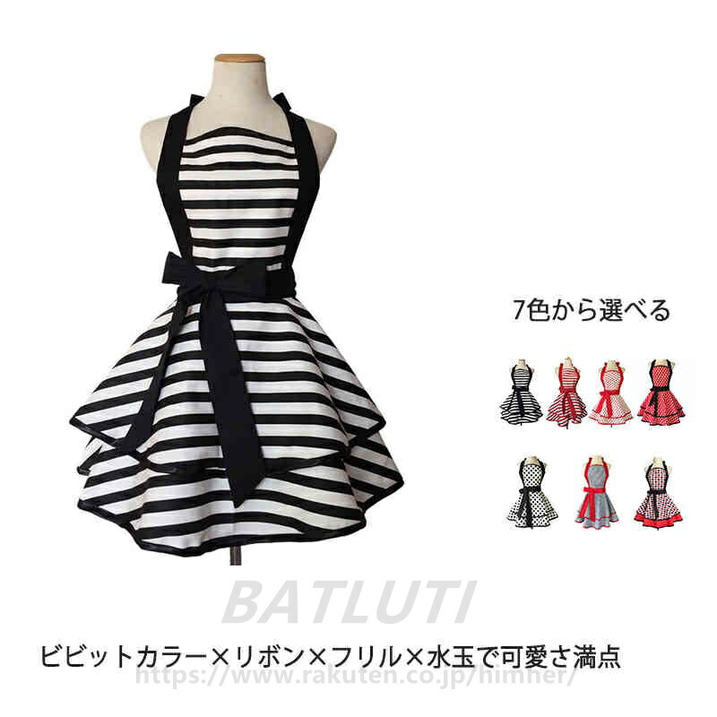 フリルエプロン レディース 7タイプ リボン スカート風 レイヤード ドット 花柄 チェック 菱形 ストライプ ショート丈 かわいい おしゃれ ギフト 料理 カフェ 喫茶店 プレゼント