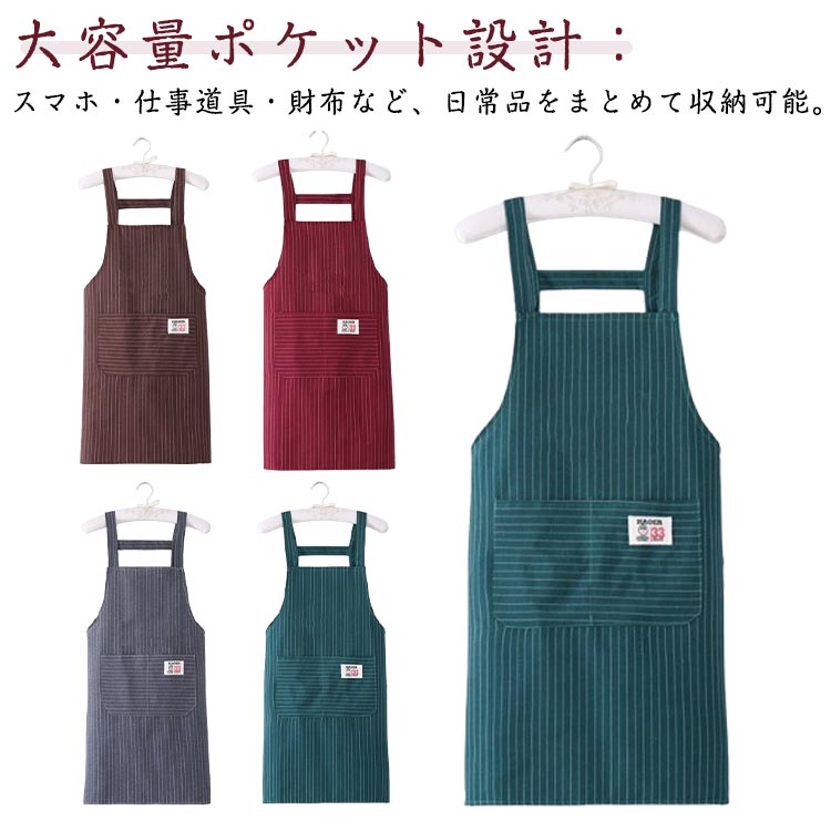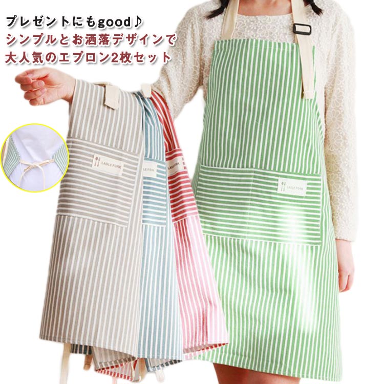 エプロン おしゃれ 綿麻 2枚セット シンプル H型 カフェエプロン レデイース メンズ ストライプ お洒落 ポケット付き 料理用 作業用 キッチン 保育園 家庭 首掛け 男女兼 汚れにくい