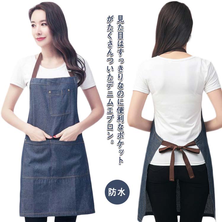 カフェエプロン レディース 防水 飲食店 H型エプロン 制服 メンズ おしゃれ ワークエプロン 男性用 女性用 H型 エプロン デニム 前掛け 無地 レザー調ベルト ポケット付 保育士