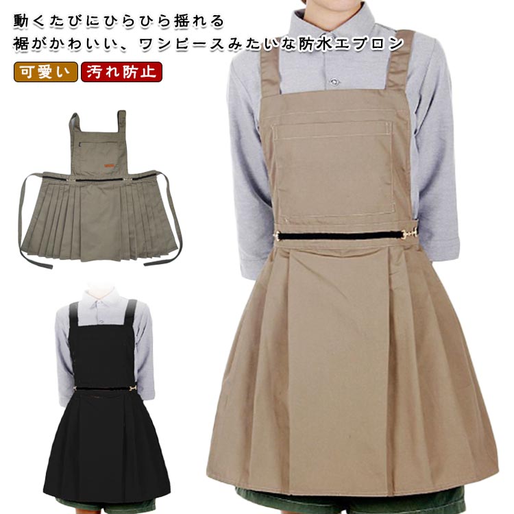カフェエプロン おしゃれ エプロン ワンピースエプロン レディース 可愛い 絵描き お手伝い シンプル 無地 料理教室 防水 保育士 大人可愛い 学校行事 ギフト プレゼント プリー カフェ