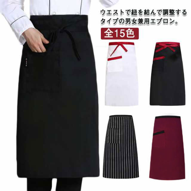 ミドル チェック カフェ エプロン ソムリエエプロン 腰巻き 前掛け サロン 無地 全15色 シンプル ストライプ柄 黒 フリーサイズ おしゃれ 業務用 男性用 男女兼用 制服 家庭 女性用