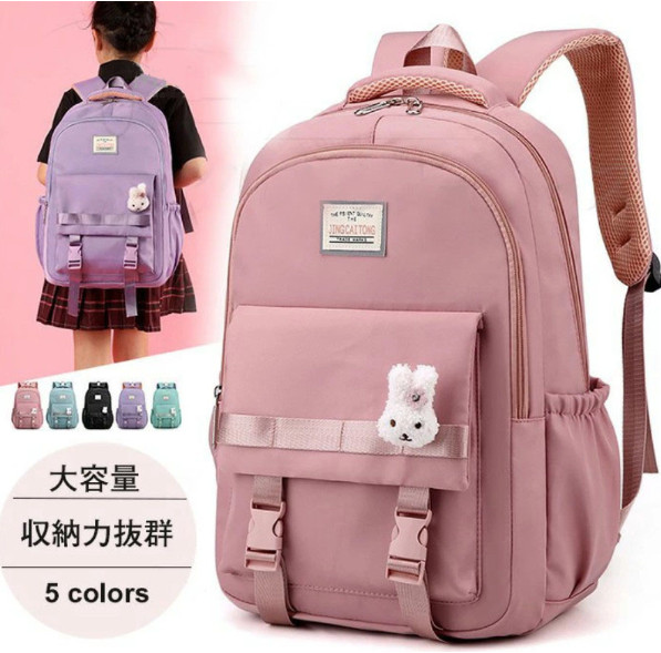 リュック キッズリュック 女の子 小学生 中学生 5color おしゃれ キッズリュック 大容量 リュックサック かばん ナイロン くすみカラー ピンク パープル ブラック 韓国