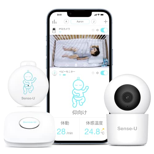 Sense-U スマートベビーモニターセット ベビーセンサー+自動追跡 見守りカメラ ベビーカメラ 2K画素 屋内用 ナイトビジョン 双方向音声通信 赤ちゃん 体動 寝返りアラート 温度 湿度 動体