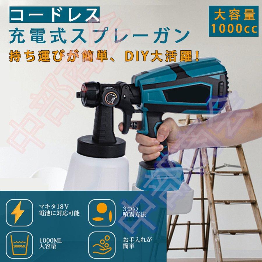 コードレススプレーガン 家庭用 電動スプレーガン 充電式 マキタ 18バッテリー併用 塗装 噴霧の幅調整可能 油性 水性 1000 電動ペインター 日曜大工
