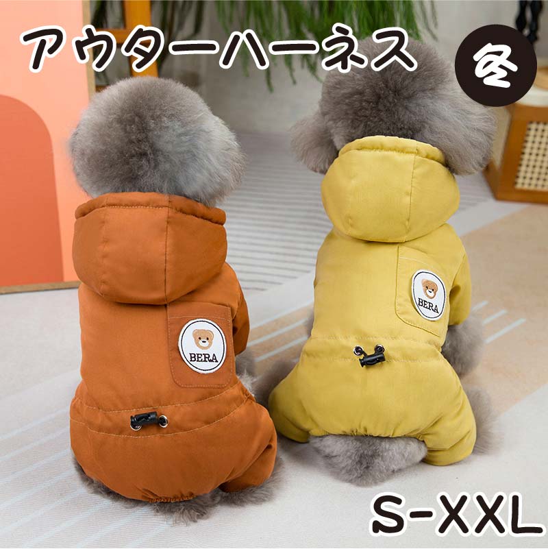 犬服 冬 犬の服 アウター ハーネス付き かわいい 裏起毛 犬 服 暖かい もこもこ つなぎ カバーオール ハーネス ウェアハーネス 小型犬 犬用 犬具 迷子防止 脱走防止 ペット 胴輪 手洗い可能