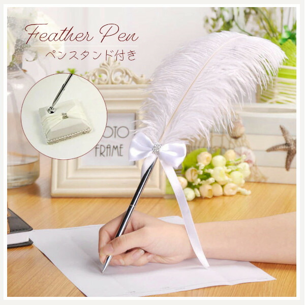 天然羽ペン&ペンスタンドセット 結婚式 セレモニー 人前式 証明書 サイン 受付 ウエディング ブライダル 披露宴 パーティー 二次会