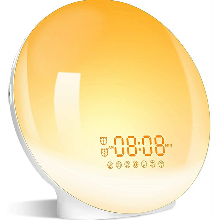 目覚まし時計 置き時計 体内時計 めざまし時計 大音量 光 置き型 アラーム スヌーズ機能 ラジオ機能 日出&日没再現 20段階調光 7色ライト 7種の自然音 室内 間接照明 子供