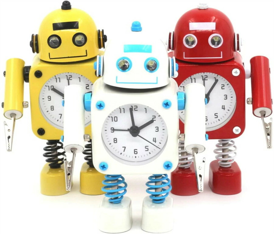 非カチカチ ロボット 目覚まし時計 ロボット目覚まし時計 ステンレス メタル - ウェイクアップクロック 点滅 アイライト と ハンドクリップ付き