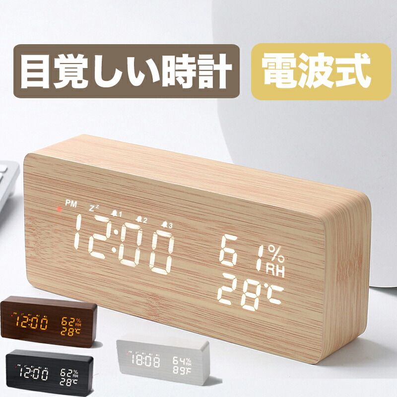 電波時計 目覚まし時計 かわいい 置き時計 湿度計 温度計 目覚まし時計 木目調 おしゃれ 卓上 音量調節 明るさ調節 入学 卒業 就職 ダイニング キッチン 寝室 玄関 オフィス ギフト