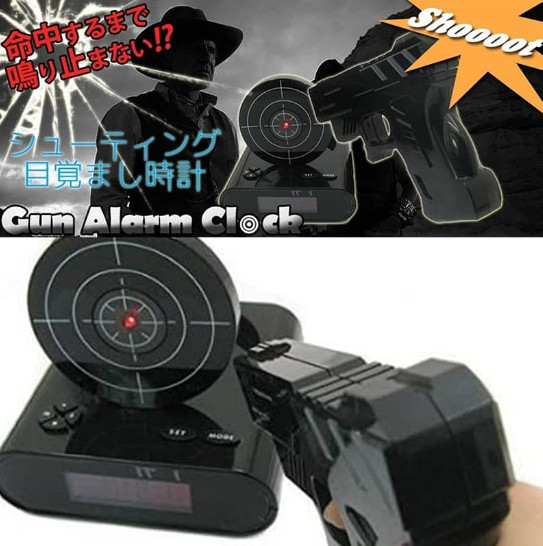 ガン アラーム クロック 録音 機能 搭載 デジタル 面白グッズ 遊び心満載 時計 置時計 射撃好きの方に AKIBA226 目覚め抜群☆ 007 シューティング ゲーム SPY なりきり プレゼ
