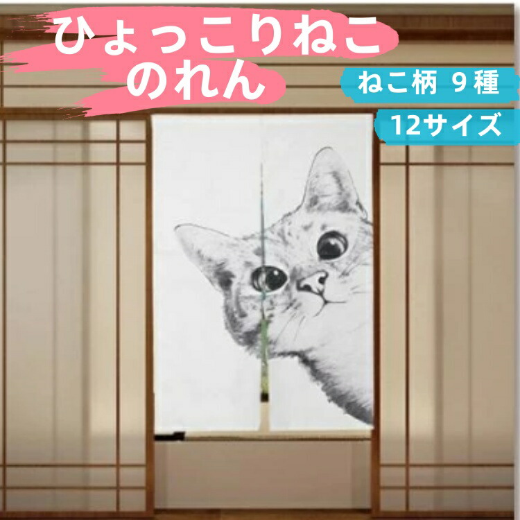 インパクトのあるネコを描いたかわいい暖簾 ひょっこりと猫がのぞき込んでいるとってもかわいいデザイン