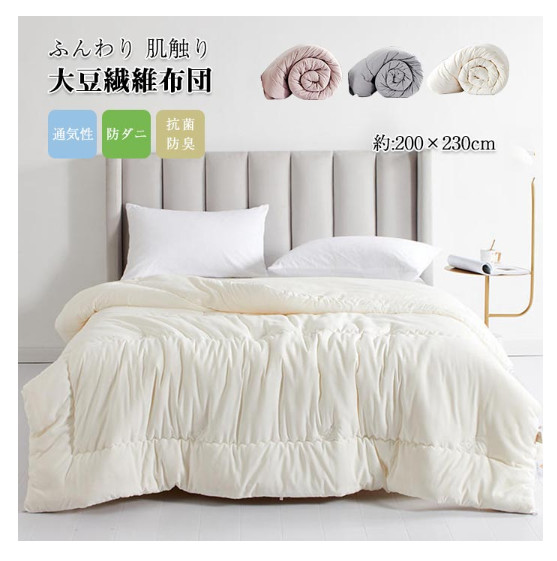 掛け布団 かけふとん ダブル 大豆繊維 肌掛け布団 掛けふとん 肌布団 200x230cm 吸湿通気 防ダニ 抗菌防臭 健康 無地 保温 春秋用 四季通用 布団 ふとん 寝具 新生活