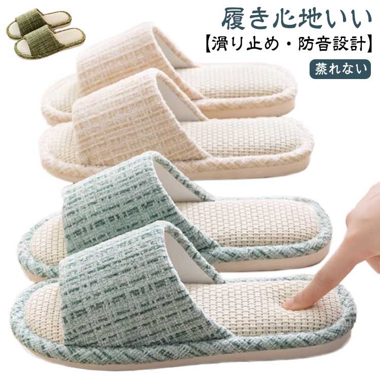 麻 スリッパ レディース メンズ 履き心地よい 綿麻 やわらか 通気 通気 前あき 快適 家族揃い ルームシューズ