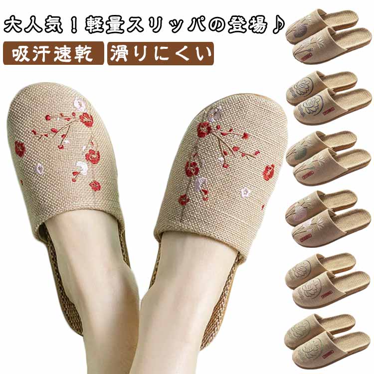 麻 スリッパ ルームシューズ 洗える 刺繍 室内 春用 夏用 秋用 メンズ レディース 麻スリッパ サンダル 室内履き 吸汗速乾 涼しい 蒸れない おしゃれ 滑りにくい リネン ルームシュー かわいい