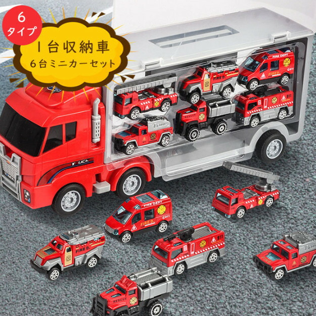 ミニカー 運搬車 働く車 おもちゃ トイカー 6台ミニカーセット 大きめ 工事カー 赤い くるま 合金 作業車両 火事車 警察車 ミリタリー車 丈夫 男の子 クリスマス プレゼント 誕生日 ギフト 3