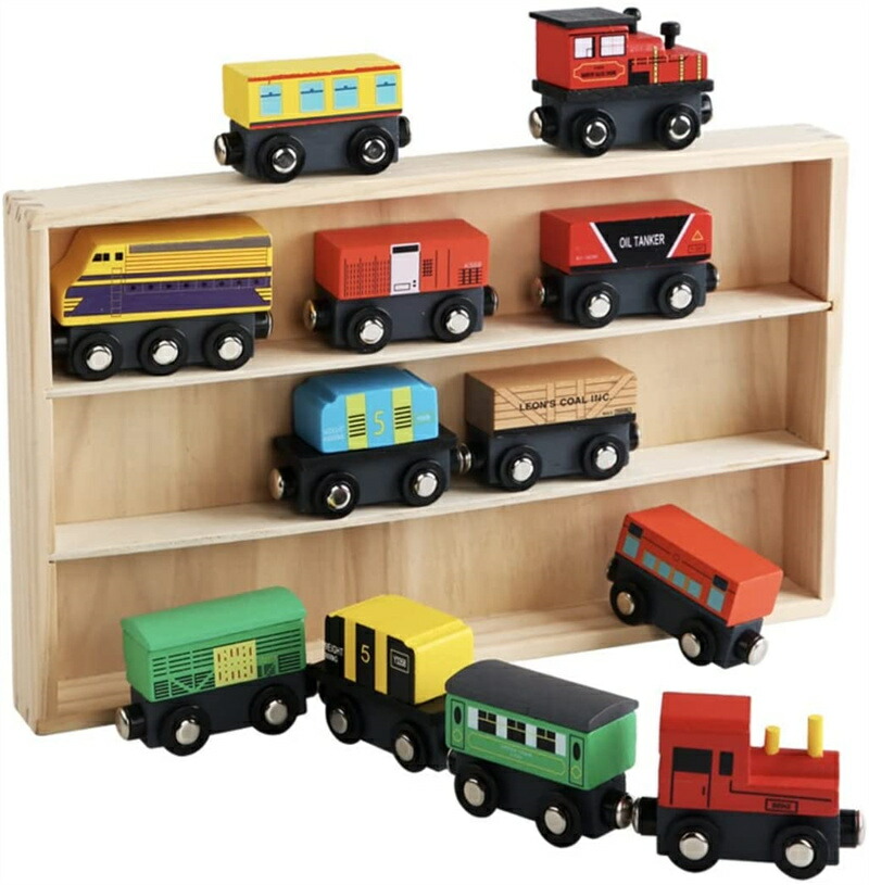 木製電車 ミニカー セット おもちゃ 木製木のおもちゃ 車 おもちゃ 12種類 列車 磁石式 慣性車ミニカー 定番玩具 モデルカー 幼児 ベビー 赤ちゃん 知育玩具 集中力 指先知育 天然木 誕生日