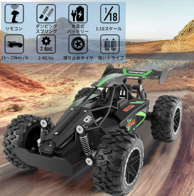 ラジコンカー こども向け 1 18 RCカー オフロード リモコンカー 2WD 2.4GHz無線操作 時速20km h 充電式 おもちゃ 車 誕生日