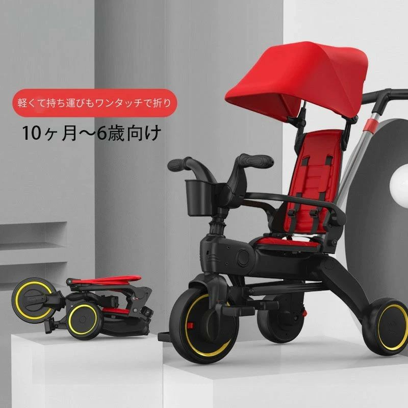 子供用三輪車 1~6歳用折りたたみ幼児ベビーカーバギー 押し棒おもちゃ 乗用玩具 三輪車 三輪車