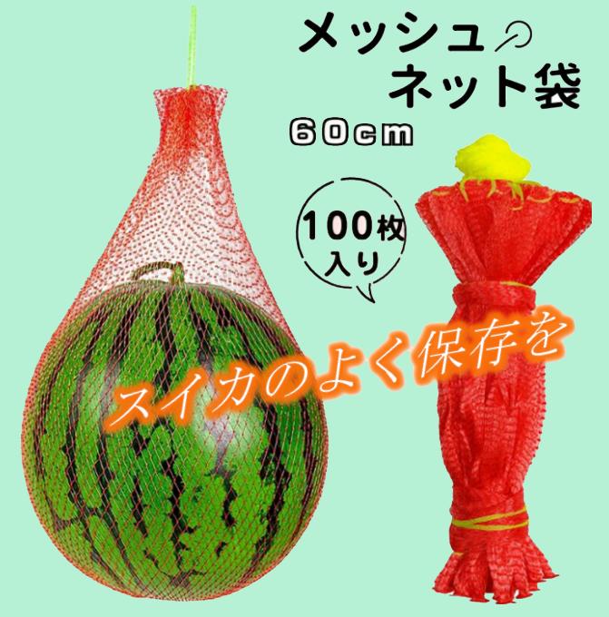 吊り下げスイカネット 100枚入り 多用途 60 ロープ付きメッシュネット袋 延伸棒ネット 丈夫なネットバッグ メッシュネット袋