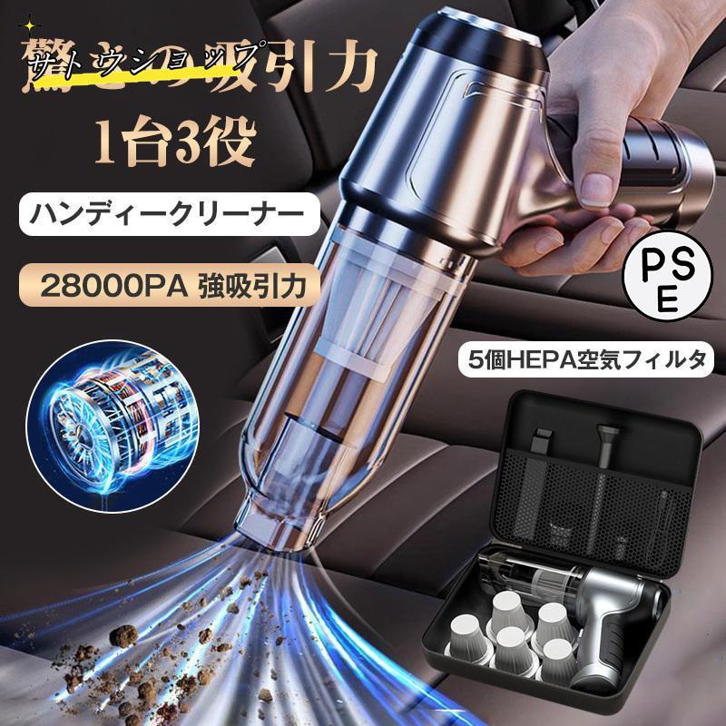 ハンディクリーナー 強力 掃除機 コードレス ブラシレスモーター 充電式 吸引力 28000 小型 軽量 車用掃除機 静音 充電式 紙パック不要 車 おすすめ