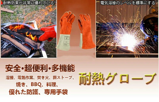 溶接用 耐熱グローブ キャンプグローブ キャンプ 手袋 バーベキューグローブ 牛革 アウトドア 耐熱手袋 耐熱軍手 グローブ 薪ストーブ 暖炉 グリル 焚き火 溶接 オーブン