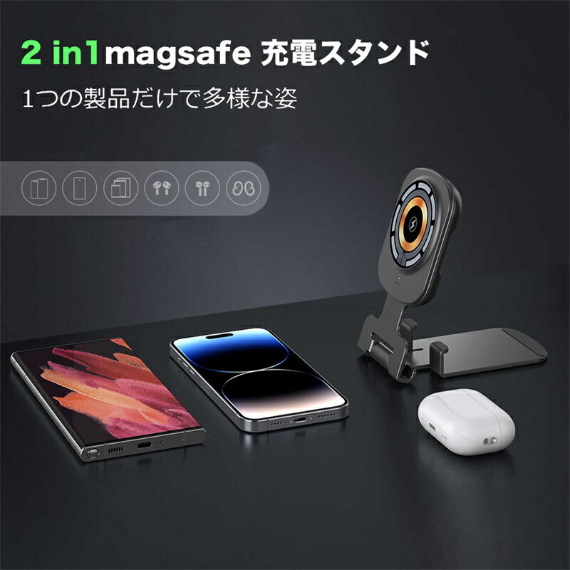 Magsafe充電器 ワイヤレス充電器 タブレットスタンド 2IN1 マグネット式 iPhone 14 13 12シリーズ用 15W急速充電 多機能 強磁力 過熱保護