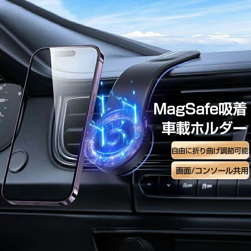 スマホホルダー 車載ホルダー マグネット スマホスタンド 車 スマホホルダー ワイヤレス充電 超強力 Magsafe スマホ充電器 片手操作 車載 スタンド マグセーフ 360度回転 落下防止