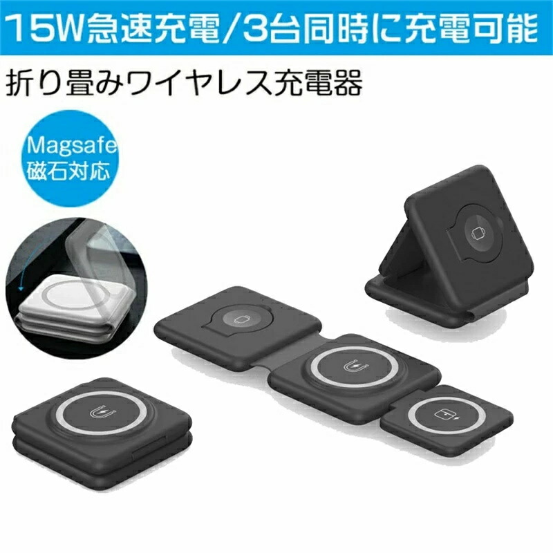 MagSafe対応 充電パッド 持ち運び 便利 外出 出張 旅行 エアーポッズプロ アイフォン ウォッチ イヤホン 折り畳み 同時 旅行 充電スタンド