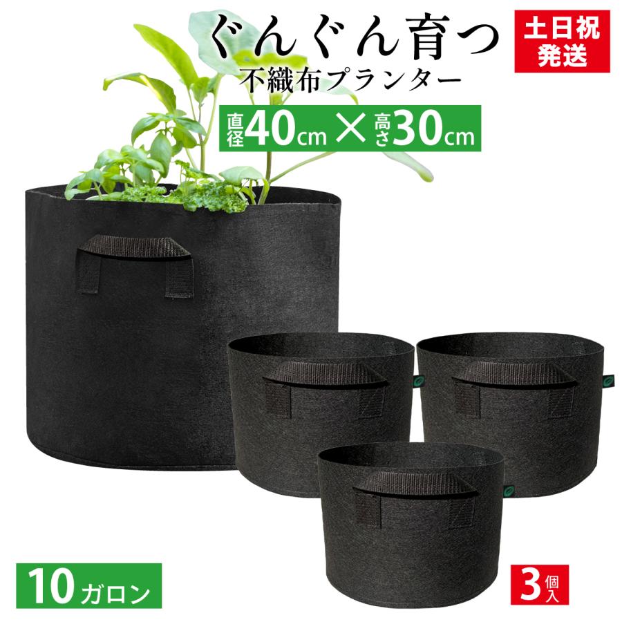 不織布プランター 10ガロン 3個 不織布ポット 14号 40x30 植木鉢 大型 軽い 軽量 深鉢 フェルト 布鉢 黒 家庭菜園 ベランダ菜園 果樹栽培