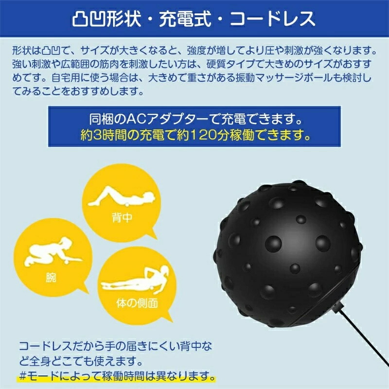 日本語取扱書5段階振動レベル 15分オートオフ 電量表示 充電式 電動 筋膜ボールダイエット 健康 リラックス マッサージ用品 簡易マッサージグッズ マッサージローラー