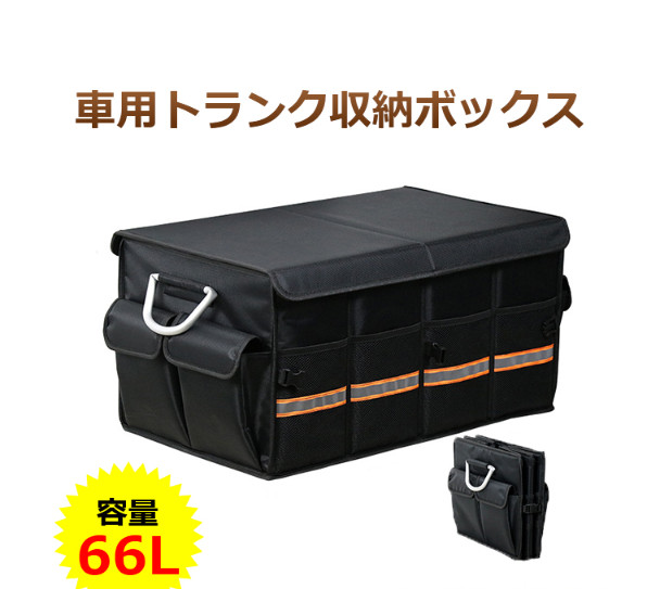 カー用品 ラゲッジルーム 折り畳み式 大容量 66L 防水 トランク収納 仕切リ板 車用品 便利グッズ 収納ケース 取っ手 反射テープ トランクボックス 車用収納ボックス