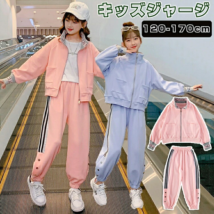セットアップキッズジャージ 女子 上下セット 長袖 春秋 秋着 ジュニア 2点セット 子供服 セットアップ パーカ 長ズボン トレーナー スポーツウェア 運動着 可愛い おしゃれ 新品2色120