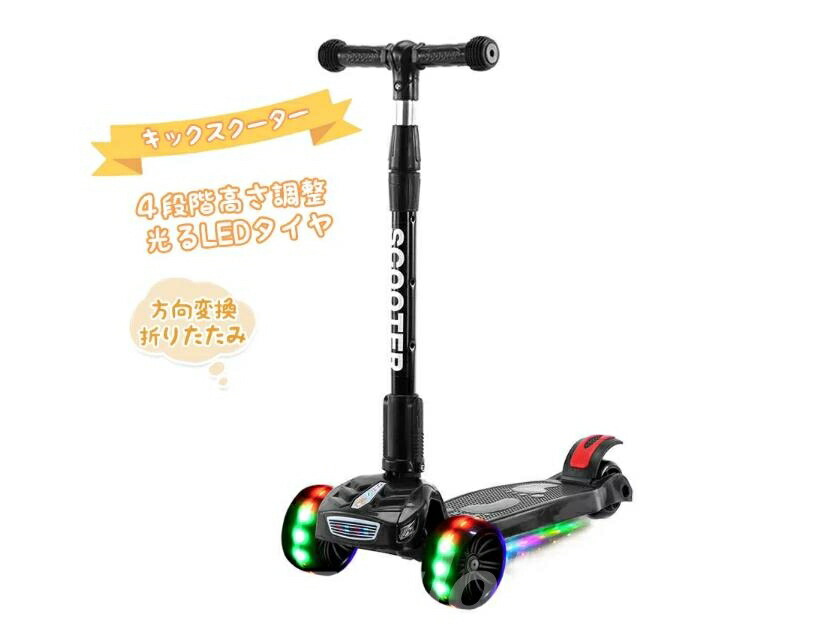 キックスクーター キックボード 子供用 三輪車 4段階高さ調整 軽量 頑丈 方向変換 安定 光るLEDタイヤ 折りたたみ 方向変換 持ち運び便利 耐荷重50kg 後輪ブレーキ 誕生日 プレゼント