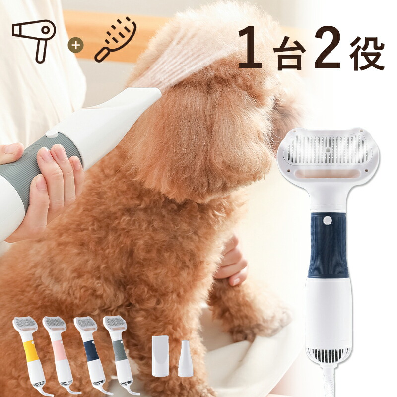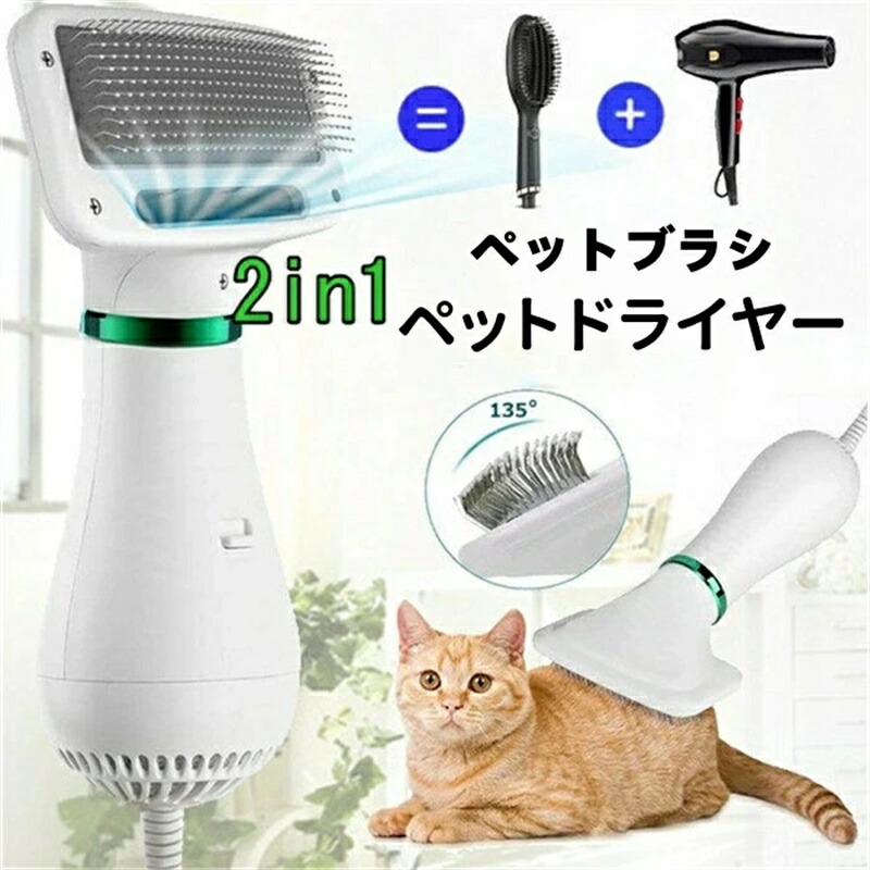 ペットブラシがついた2in1ペット用ドライヤー 猫犬用 グルーミング ヘアドライヤー ペットブラシ ペットケア美容 1台2役 家庭用 シャワー お風呂