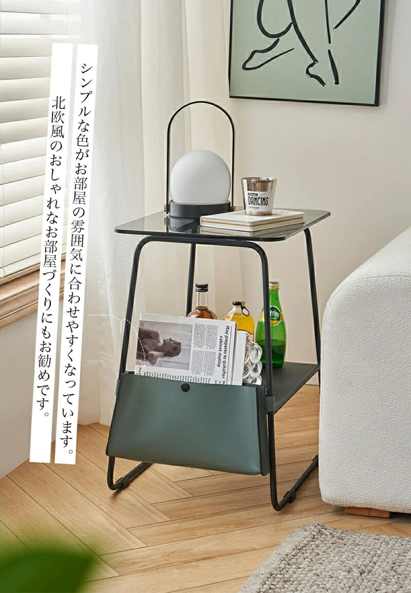 サイドテーブル ナイトテーブル コーヒーテーブル スリム 収納 ミニテーブル おしゃれ 北欧 クリア ガラステーブル 家具 モダン インテリア ソファテーブル 省スペース
