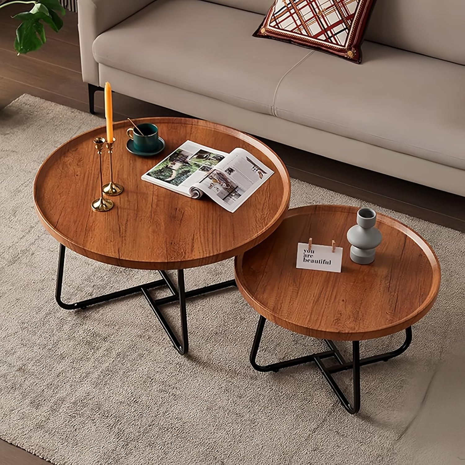 ソファサイドやベッドサイドに置いて快適生活♪ブルックリンスタイルのおしゃれなサイドテーブル ドリンク、雑誌、テーブルランプなど余裕で置ける直径40cm♪
